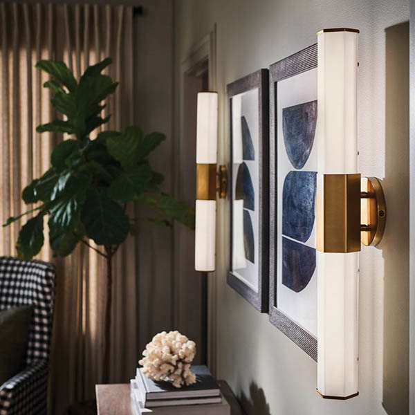 Facet è una lampada da parete con angoli interessanti che si combinano con un bracciale centrale audace per creare un look tagliente e contemporaneo. Il vetro esagonale acidato è messo in risalto da tappi centrali e terminali in ottone, cromo lucido o nero opaco della stessa forma, mentre il sistema di montaggio rimane invisibile per evidenziare semplicemente lo stile superiore. Dotata di un modulo LED integrato e realizzata in conformità alle specifiche IP44, questa lampada è perfetta anche per il bagno.