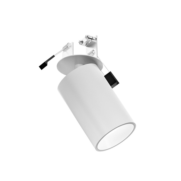 Faretto ad incasso orientabile con struttura in alluminio e finitura in bianco satinato. Ideale per forniture contract.