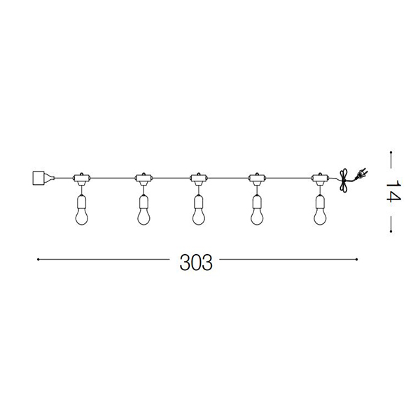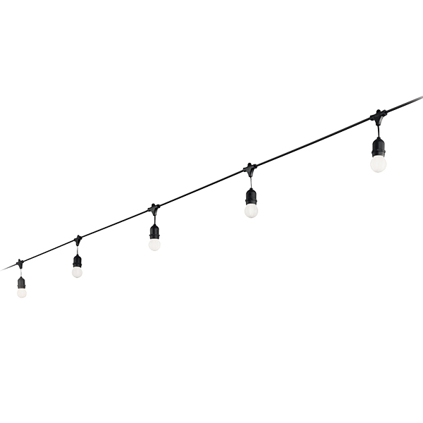 Fiesta, un nome un programma per questa sospensione da esterno perfetta per le feste estive! Da acquistare subito per creare un'atmosfera magica nello spazio outdoor. Il cavo con portalampade e occhielli di ancoraggio è realizzato in materiale plastico. Disponibile nel colore nero e fornita con spina per esterni.