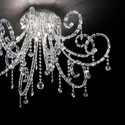 Montatura e porta lampade in metallo cromato. Elementi decorativi quadrati in cristallo molato.