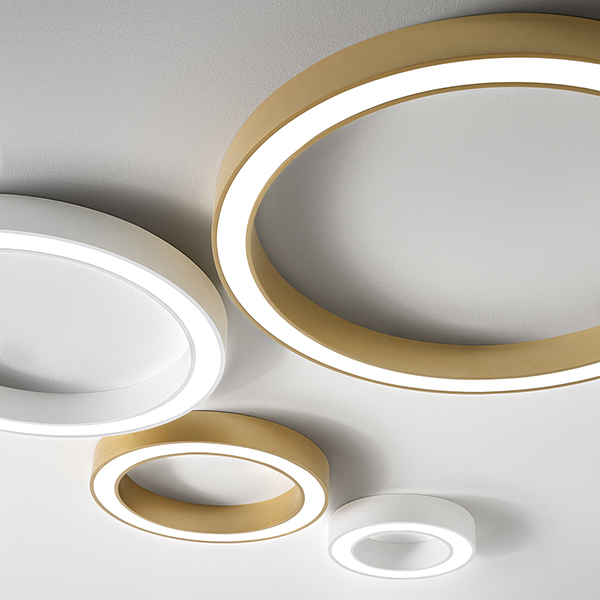 Luce diffusa modellata nell’eleganza del cerchio per Flor, una plafoniera di tendenza ideale per illuminare diversi contesti. In casa o all'interno di hotel e negozi, porta un tocco di stile e modernità. Disponibile in quattro dimensioni e in due finiture: bianco satinato e oro spazzolato.