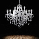 Serie di sospensioni dalla montatura in metallo disponibile con finitura dorata o in cromo. Corpo luce e bobeches in vetro decorato trasparente. Pendagli con elementi ottagonali e gocce finali in cristallo molato.