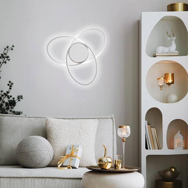 Plafoniera/applique decorativa con un design ispirato alla natura, caratterizzato da un diffusore che richiama la forma delicata dei petali di un fiore. Questa elegante lampada, oltre a garantire un'illuminazione omogenea e piacevole, aggiunge un tocco di raffinatezza a qualsiasi ambiente.