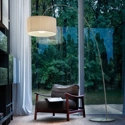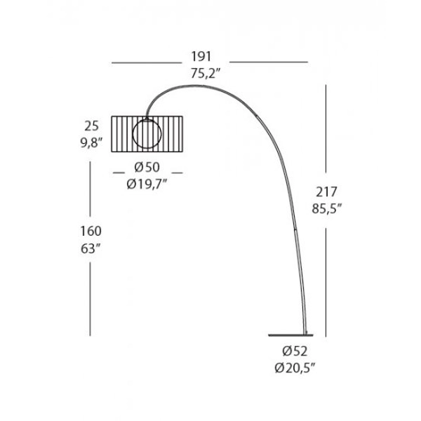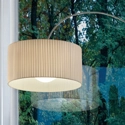 Morosini Fog TE A Plissè. Lampada da terra a forma di arco in metallo nichel satinato, bianco opaco oppure nero opaco. Diffusore in vetro soffiato bianco latte satinato, paralume in tessuto Pongè plissettato bianco, nero, avorio e moca.