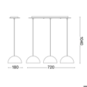 Sospensione a 3 luci ideale per illuminare un tavolo. Rosone e diffusore sono in metallo rifinito in vernice opaca con finitura coffee. Parabola interna ondulata e smaltata bianca. Cavo in tessuto.