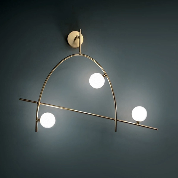 Lampada da parete realizzata in acciaio verniciato con finitura oro e diffusori in vetro. Freedom è una proposta di design per impreziosire le pareti di case, contesti commerciali o ricettivi.