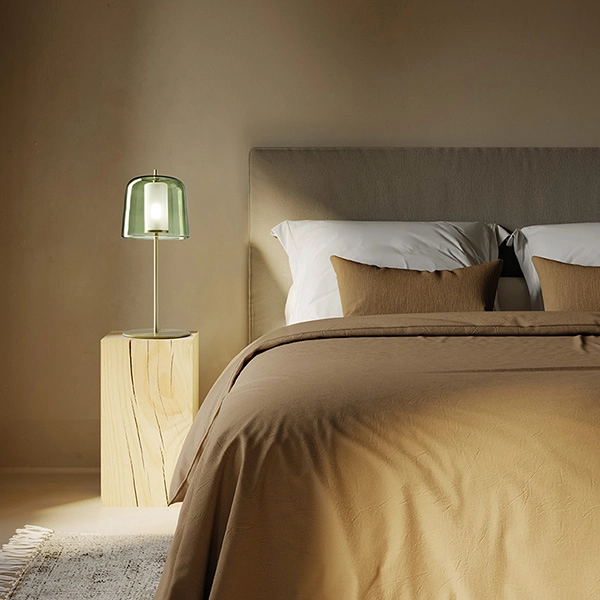 Lampada da tavolo essenziale e moderna contraddistinta da un morbido drappo che avvolge il punto luce. La trasparenza del vetro rende rende leggera ed elegante questa lampada di Miloox. I colori del paralume si combinano alla perfezione con finiture metalliche che impreziosiscono la lampada senza appesantirla. Disponibile nelle finiture verde prato, azzurro cielo e sabbia. Diffusore interno in vetro borosilicato sabbiato. Stelo e rosone in oro spazzolato. Cavo di alimentazione nero 150 cm. Lampadina installabile G9 a led dimmerabile.