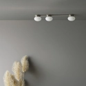 La semplicità incontra il design in questa lampada a parete e soffitto. Fuji dispone di tre diffusori in vetro soffiato bianco latte. La montatura è realizzata in metallo verniciato grigio tortora.