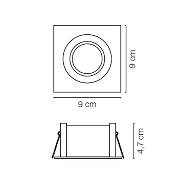 Funky è un faretto da incasso versatile per interni con montatura quadrata e lampada semiretratta, integrabile nel cartongesso tramite alette laterali.
