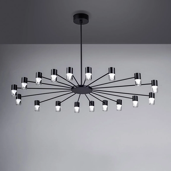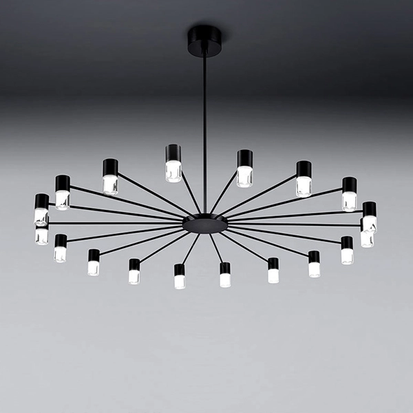 Chi cerca un lampadario scenografico è nel posto giusto! Galileo è una lampada a sospensione ideale per ampi spazi, come zone living, hall di hotel, grandi sale di ristoranti. La trovi in due misure per rispondere alle tue esigenze. Finitura: nero. Materiali: alluminio + acrilico. Driver incluso. Grado di protezione IP20.