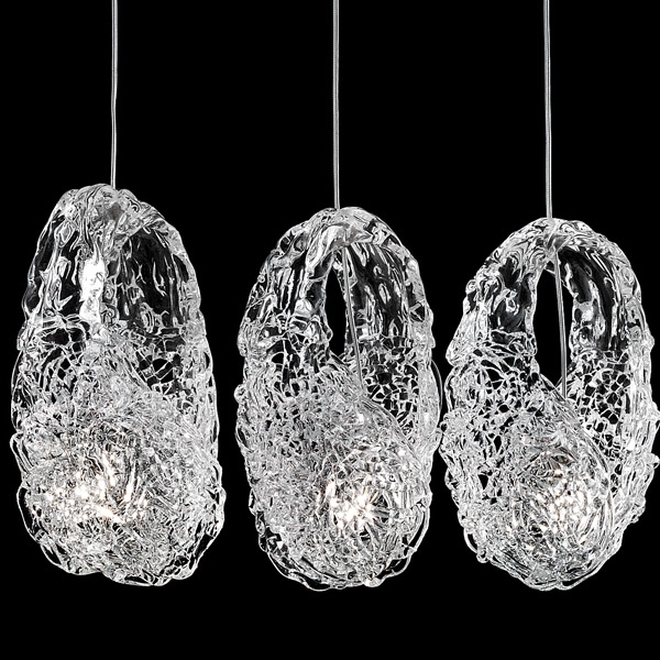 Lampada a sospensione Genesi, realizzata da Bellart, struttura in metallo e diffusori in vetro lavorati a mano