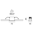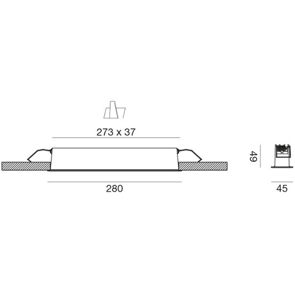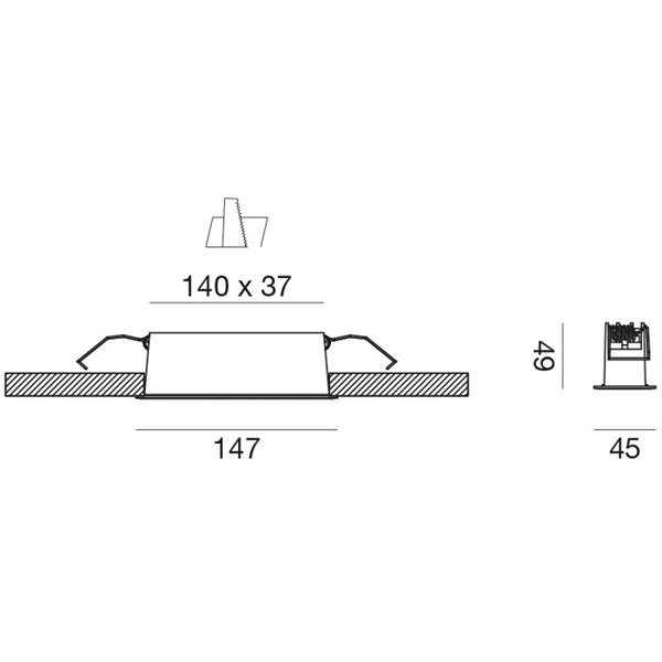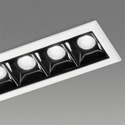 Faretto ad incasso con 2, 5, 10 o 15 punti luce. Struttura in alluminio e finitura in bianco con cover antiabbaglio in nero lucido. Diffusore con ottica antiabbaglio. Modulo LED incluso. Trasformatore incluso ma non integrato.