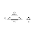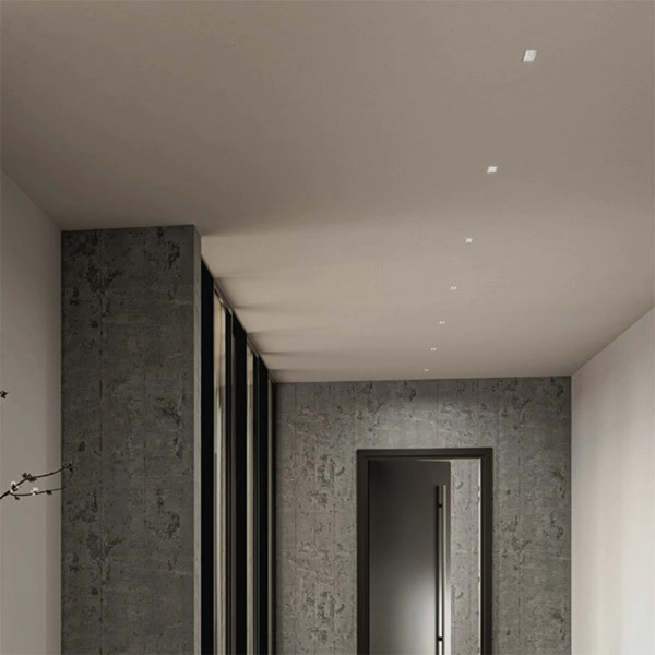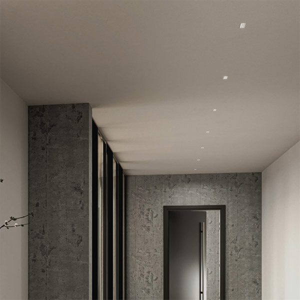 Faretto ad incasso con 2, 3, 6 o 12 punti luce per la versione lineare; faretto ad incasso con a 4 o 9 punti luce per la versione quadrata.
