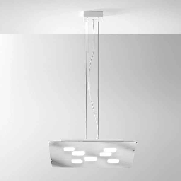 In questa versione Giselle si contraddistingue per un’eleganza unica e una forma essenziale e minimal. I tasselli luminosi sono disposti apparentemente in modo casuale sulla superficie creando elementi aggraziati. Montatura in metallo bianco. Diffusore in metacrilato e alluminio con finiture acciaio, bianco e tortora. Luce in biemissione. Rosone bianco per finiture bianco e tortora. Rosone in tinta per finiture acciaio. Lampadine non incluse.