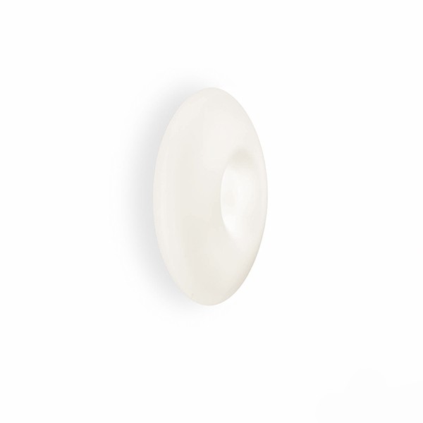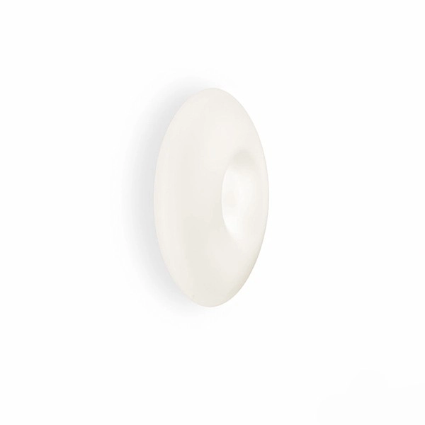 Applique o plafoniera dalla montatura in nickel satinato e diffusore in vetro bianco soffiato e acidato.