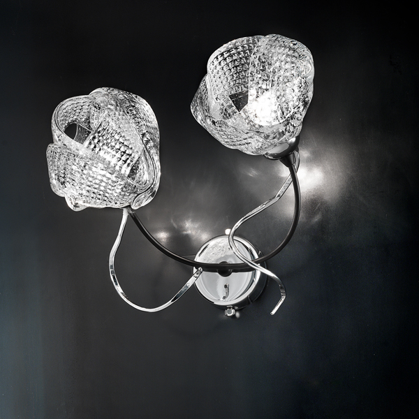 AppliqueGomitoli A2L, realizzata da Bellart, struttura in metallo laccato nero e diffusori in vetro soffiato.