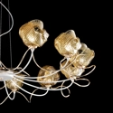 Lampada a sospensione Gomitoli S8L, realizzata da Bellart, struttura in metallo laccato bianco e diffusori in vetro soffiato.