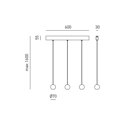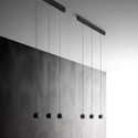 Sospensione multipla lineare a 3 luci con montatura in alluminio. Finiture in bianco satinato con rosone bianco satinato, nero satinato con rosone nero satinato e oro con rosone nero satinato. Sorgente luminosa LED ed alimentatore inclusi. Un modello di design che si addice a più contesti, sia privati sia ricettivi e commerciali.
