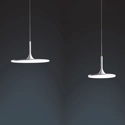 Halo è una sospensione a led ipermoderna ideale per creare una luce di grande design sia all'interno della casa sia all'interno di locali, in modo particolare per illuminare i tavoli con un'illuminazione puntuale. Disponibile in due misure, presenta una sorgente a led. Driver incluso, materiali: alluminio + acrilico.