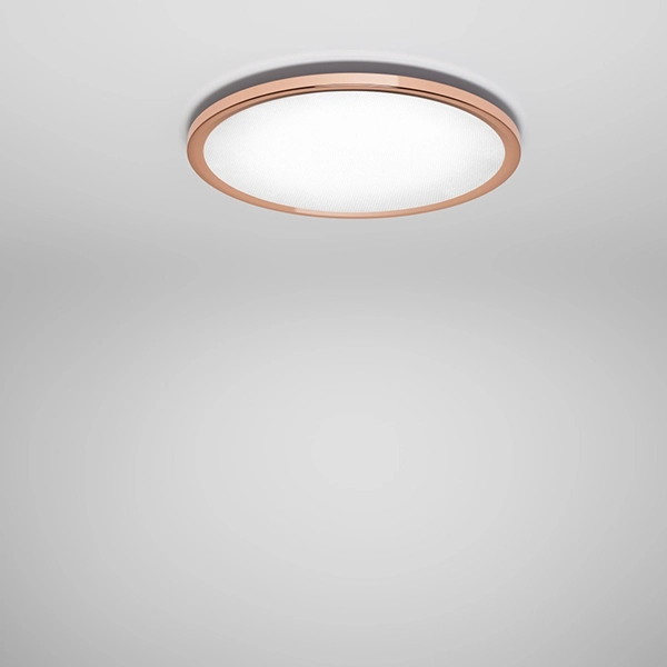 Plafoniera di design interamente in metallo e di forma circolare disponibile in due misure e in due finiture eleganti: nichel nero e oro rosa. Tecnologicamente avanzata grazie alla sorgente topLED e al sistema Opti-3, è ideale per qualunque tipo di ambiente con un arredamento moderno, dalla casa ai locali oppure agli hotel. Dimmerabile in phase-cut e installabile anche a parete.