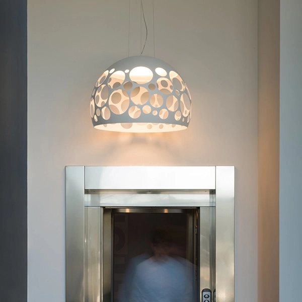 Hole è una cupola in alluminio che illumina con eleganza diverse zone della casa. Si caratterizza per un decoro ottenuto con la tecnica del laser 3D e per una sorgente a LED ricoperta da un diffusore realizzato in PMMA. Disponibile in 5 misure e in due finiture, bianco e bronzo. Il rosone a soffitto è bianco. Una lampada a sospensione di design perfetta per progetti d’illuminazione d’interni di arredamenti moderni e contemporanei. Lampadina non inclusa. Made in Italy.