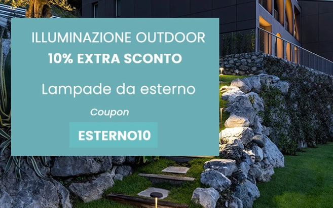 Approfitta della promozione speciale su tutto il catalogo di lampade da esterno e giardino. Extra 10% con coupon ESTERNO10.