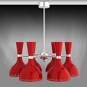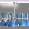 Con uno stile che richiama gli anni '60/'70, la sospensione Imbuto disponibile a 6 o a 8 luci, entra in scena con finiture colorate che colpiscono al primo sguardo! Si può posizionare in diversi ambienti della casa, come la cucina, il soggiorno o la camera da letto per portare una luce di design che accompagna ogni gesto quotidiano. La struttura è in metallo con finitura in argento satinato blu e rosso. Designer: Luca Bussacchini.