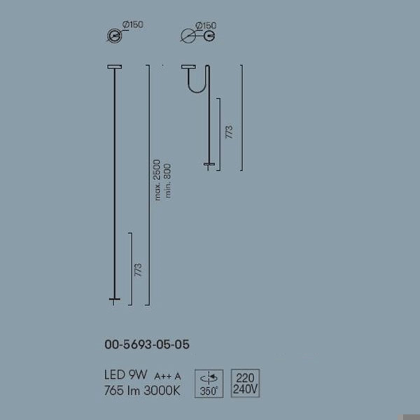 La struttura è in alluminio e acciaio rifiniti in nero opaco, il diffusore è in PMMA sfumato.