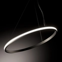 Un disco luminoso che lascia la sua firma in ogni ambiente in cui viene installato. Questo lampadario è un oggetto di design che illumina e arreda allo stesso tempo. Montatura in alluminio satinato bianco, oro spazzolato o titanio. Diffusore in silicone bianco opale. Sorgente luminosa led dimmerabile tramite dimmer esterno+push (non inclusi).