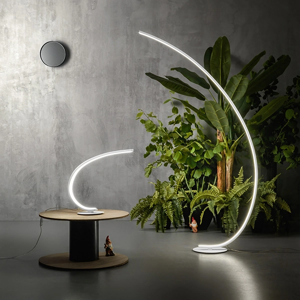 Un design minimal ed essenziale per questa lampada da tavolo firmata Gea Luce. Iole è una soluzione moderna adatta ad illuminare ogni angolo della casa o di strutture ricettive ed esercizi commerciali. Struttura in alluminio satinato bianco, oro spazzolato o titanio. Diffusore in silicone bianco opale. Sorgente luminosa LED dimmerabile tramite dimmer integrato nel cablaggio.