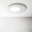 Iride è una lampada da soffitto con base e montatura in metallo verniciato opaco. Diffusore in policarbonato opale ruvido e finitura: bianco. Versatile, può essere collocata in ogni zona della casa.