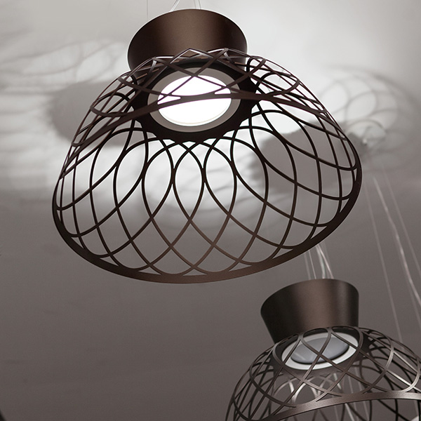 Jam è una sospensione di grande design e totalmente Made in Italy. Composta da un paralume a fasce di metallo realizzato con la tecnica del laser 3D, è disponibile in due misure: diametro 30 cm e 45 cm e in due finiture: bianco e bronzo. La sorgente luminosa in questa lampada quasi non si vede creando un particolare contrasto tra vuoti e pieni e può essere utilizzata in diversi modi: verso il basso, verso l’alto o in doppia accensione per un effetto ancora più prezioso. La lampada è sostenuta da tre cavi in acciaio che ne permettono la regolazione in altezza. Materiali: metallo e PMMA.