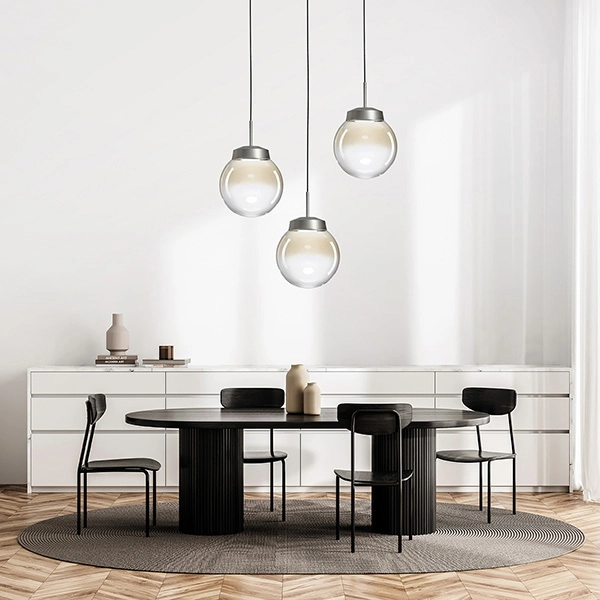 Jotto è una lampada a 3 luci dallo stile unico con tre vetri borosilicato trasparenti con sfumatura ambra. Struttura acciaio spazzolato. Rosone lineare verniciato bianco opaco 74x9 cm. Una soluzione perfetta per illuminare e arredare. Ideale per contesti privati o ricettivi. Scopri tutte le versioni disponibili!