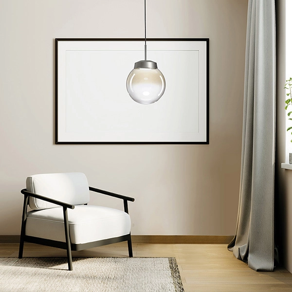 Lampada moderna e versatile che può essere inserita in ogni contesto portando un tocco di stile. Jotto è caratterizzata da un diffusore a forma sferica in vetro Pirex trasparente con sfumatura ambra e supporto in metallo spazzolato alluminio. Disponibile in due versioni, con sfera diametro 15 cm o diametro 25 cm