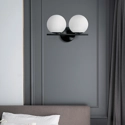 Jugen applique a 2 luci in vetro soffiato bianco latte diametro cm 15 con montatura verniciata nero. Linee minimal e moderne per illuminare le pareti della casa, di locali e di strutture ricettive. Design esclusivo di Davide Negri.