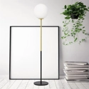 Lampada da terra che può essere inserita in qualunque ambiente della casa, dalla zona living alla zona notte, portando stile ed eleganza. È realizzata in vetro soffiato bianco latte con una montatura verniciata in nero e ottone spazzolato. Il cavo di alimentazione è trasparente e il rosone in ottone spazzolato. Il design esclusivo è di Davide Negri.