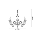 Questo lampadario scenografico dallo stile classico si addice a grandi ambienti, sia della casa che di hotel. Disponibile a 6 o 8 luci, Justine ha un rosone e una montatura in metallo con bracci in fusione. Lampada rifinita con vernice opaca bianca. Copricatena in velluto.