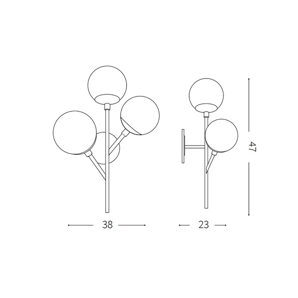 Kepler è un'applique di design che illumina con stile gli ambienti della casa e delle strutture alberghiere. La catena e la montatura sono in metallo verniciato nero opaco. I diffusori sono in vetro soffiato trasparente ambrato.