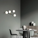 Applique di design a 4 luci ideale per illuminare diversi ambienti, dal corridoio, alle scale, alla zona giorno della casa. Kika ha una struttura in metallo, colore liquirizia nera con particolare in oro spazzolato. Vetri soffiati bianco latte.