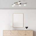 Kika è una plafoniera di design a 5 luci che illumina ogni contesto portando un tocco di stile. Struttura in metallo, colore liquirizia nera con particolare in oro spazzolato. Vetri soffiati bianco latte.