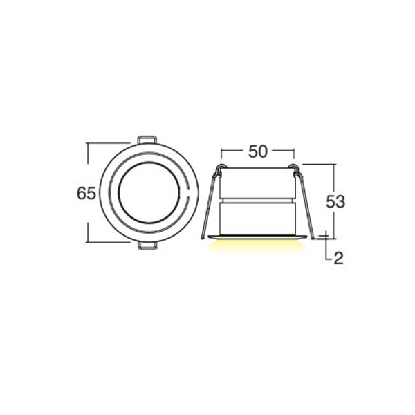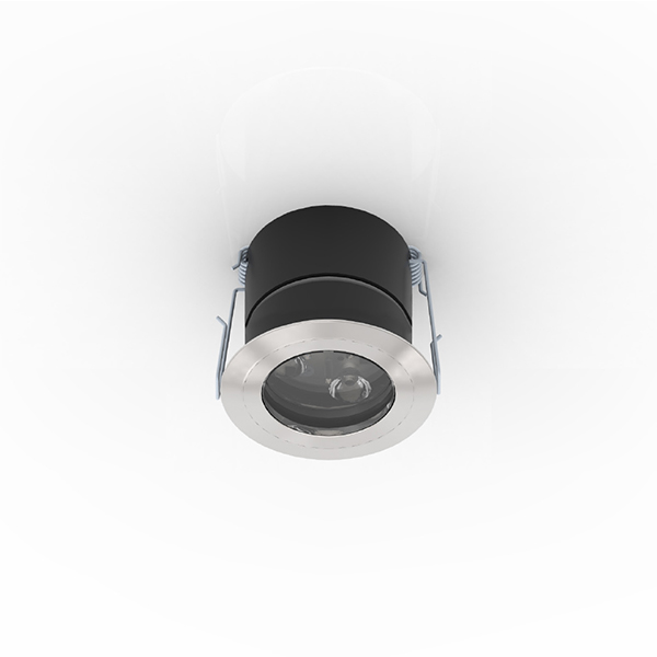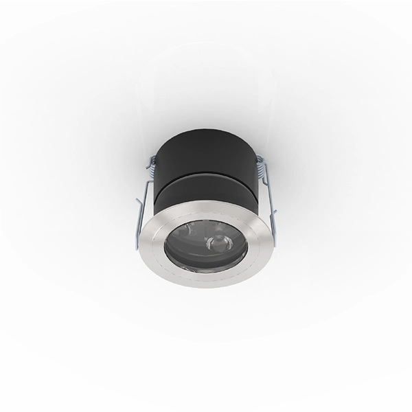 Faretto da incasso IP40 con led da 6 W. Corpo in lega di alluminio e flangia in alluminio o acciaio con vetro frontale di protezione. Installazione a soffitto o parete con molle. Fornito con 150mm di cavo 2×0,35. Alimentatore incluso per min 1pz - max 2pz. Centralina PUSH per max 4pz inclusa.