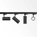 Kit soffitto binario trifase disponibile nella versione con lunghezza 2 m nelle finiture bianco e nero. Il binario viene fornito con 3 proiettori. I proiettori cilindrici Fox sono in alluminio estruso, girevoli 275° e orientabili fino a 90°. Il driver di alimentazione è incluso e trova alloggiamento nel corpo cilindrico del proiettore stesso. Sorgente luminosa con tecnologia COB LED integrato, disponibile con potenza 25 W e con una temperatura di colore di 3000 K o 4000 K e con indice di resa cromatica fino a 80; binning iniziale ≤2-Step MacAdam; ottica simmetrica a fascio di apertura medio. Montaggio e smontaggio senza utensili. Protezione IP20; classe isolamento I; durata utile LED 30.000 h L70B50. Il profilo Link è in alluminio estruso nella versione a plafone. Questo tipo di illuminazione a binario è ideale per illuminare piccoli e medi ambienti dove vengono richiesti ampia flessibilità di disposizione, come spazi commerciali e retail. Garanzia 5 anni.