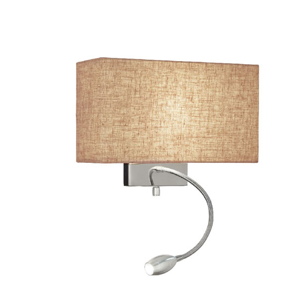 Applique dalla montatura in metallo cromato e paralume in lamina di PVC rivestita con tessuto canvas.