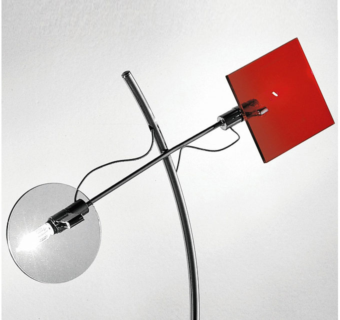 Lampada da tavolo, diffusori in plexiglas, montatura in cromo.