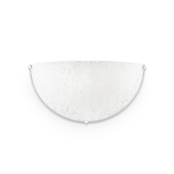Lana è un'applique minimal che dispone di un diffusore in vetro trasparente con decorazioni serigrafate all'interno e sabbiato all'esterno. I ganci ferma vetro sono in metallo cromato. Perfetta per illuminare le pareti della casa o di strutture ricettive.