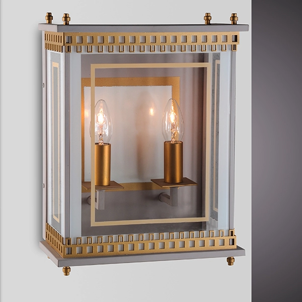 La lanterna castello nella versione a parete è un mix di classicità ed eleganza, perfetta per forniture contract! Disponibile in due versioni, questa applique ha una struttura in metallo e vetro e una finitura in nero opaco e oro. Made in Italy, designer: Luca Bussacchini.