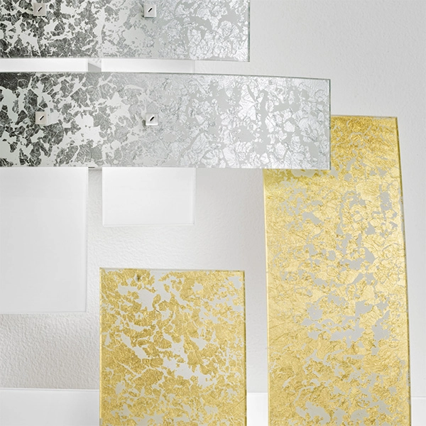 Spazio al colore, agli abbinamenti, alla particolarità con Lara plafoniera preziosa con particolari in foglia oro e foglia argento. Una lampada da soffitto che colpisce per la sovrapposizione geometrica e cromatica dallo stile moderno e ricercato. Montatura in metallo con finitura cromo. Diffusore in vetro bianco con particolari foglia oro o foglia argento.