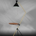 Lampada da terra vintage con tavolino per ambienti residenziali e ricettivi. Con un'eleganza che fa rivivere gli anni passati, questa soluzione è perfetta per accompagnare ogni gesto garantendo un ottimo comfort luminoso. La struttura è in metallo con finitura in ottone satinato e nero.