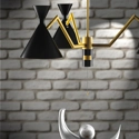Lei è un lampadario vintage a tre luci che si addice a diversi ambienti, sia residenziali sia ricettivi. Ha una linea inconfondibile e un design che evoca linee degli anni '60 riportando in auge l'eleganza dei coni. Garantisce la massima efficienza in termini di comfort luminoso. La struttura è realizzata in metallo con finitura in ottone satinato e nero.
