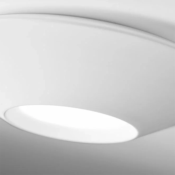 Lampada da soffitto a una luce dal design pulito e semplice. Lepreum può essere dipinta grazie alla sua particolare struttura in gesso. Può essere collocata nella zona living o nella zona notte della casa per illuminare con un mix di funzionalità ed estetica. Lampadine installabili: fluorescenti o led.